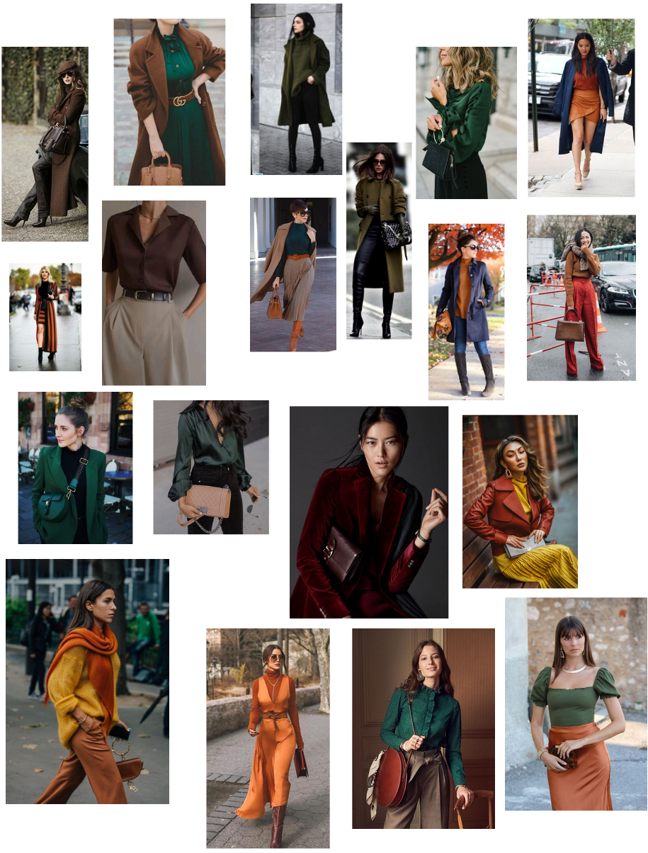 Creating harmonious color combinations within the Dark Autumn color palette can help you achieve a cozy and sophisticated look in various aspects of your life, from fashion to home decor. Here are some color combination recommendations that work well within the Dark Autumn color palette: